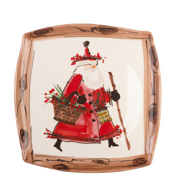 Handmade of terra bianca (white clay) in Tuscany. Jolly Old St. Nick is handpainted on this stunning oval serving bowl with a plaid rim.