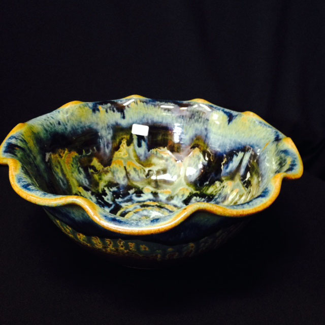 RAY POTTERY " SCALLOPED SALAD BOWL " BLUE, MEDIUM