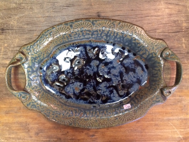 RAY POTTERY " OVAL SERVING PLATTER WITH HANDLES "