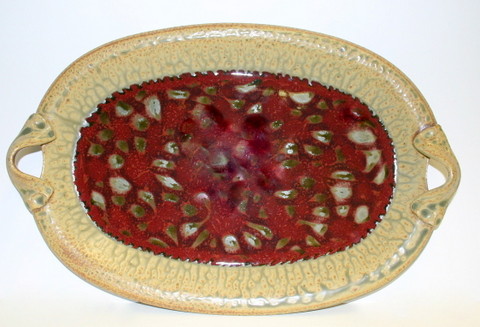RAY POTTERY RED OVAL PLATTER WITH HANDLES